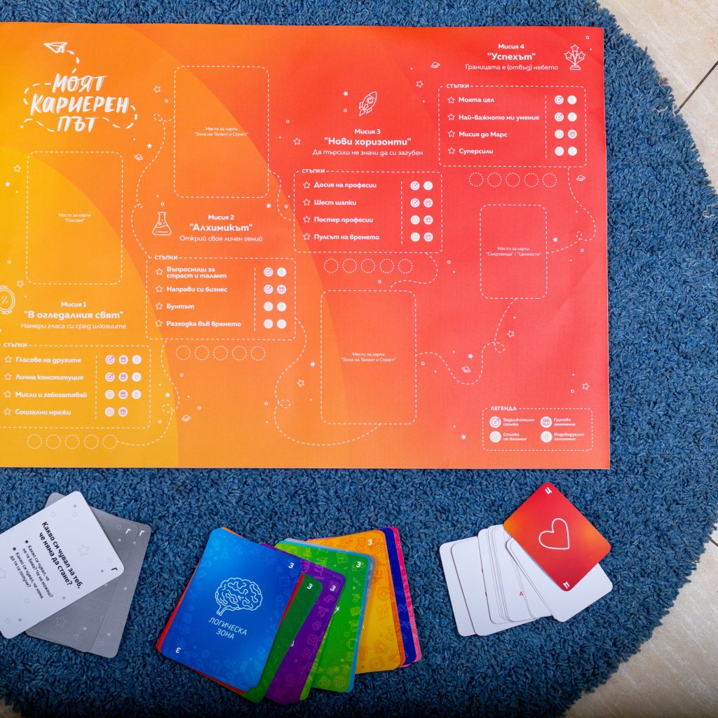 ние създадохме МОЯТ КАРИЕРЕН ПЪТ. Играта е подходяща за учители, директори, училищни психолози, кариерни консултанти и всички, които работя с младежи за тяхното кариерно ориентиране. Моят кариерен път е настолна игра, методология и комплект активности за кариерно ориентиране и развитие.